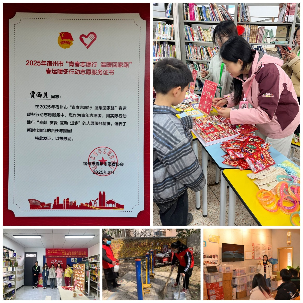 在乡村振兴教育一线,学生党员马芮参与了“书海拾贝”公益项目,策划光影游园活动并制作新年视频,为8所乡村小学定制书单及阅读礼包,激发千余名儿童阅读兴趣;在社区服务前沿,学生党员赵可心在家乡社区打造“线上+线下”传播矩阵,制作安全教育短视频12部、便民海报30幅,同步开展“暖冬陪伴”行动服务独居老人;在春运保障现场,学生党员贾西贝在高铁站日均服务旅客数百人次,提供票务协助、应急帮扶等专业化服务,保障春运高效运转。此外,还有更多的党员同志通过各种不同的形式积极投身于志愿服务之中,让党徽在为民服务中闪耀光芒。
